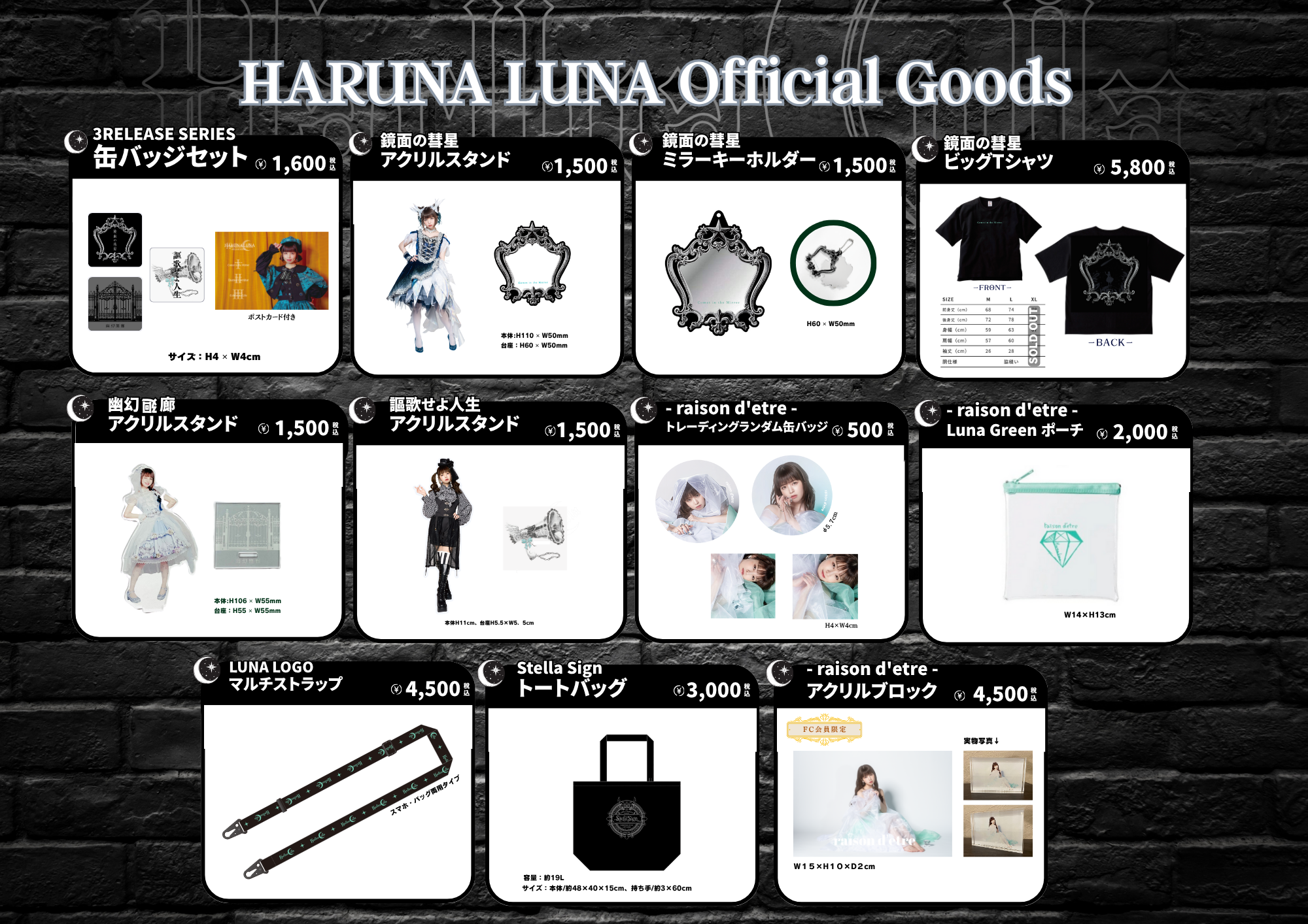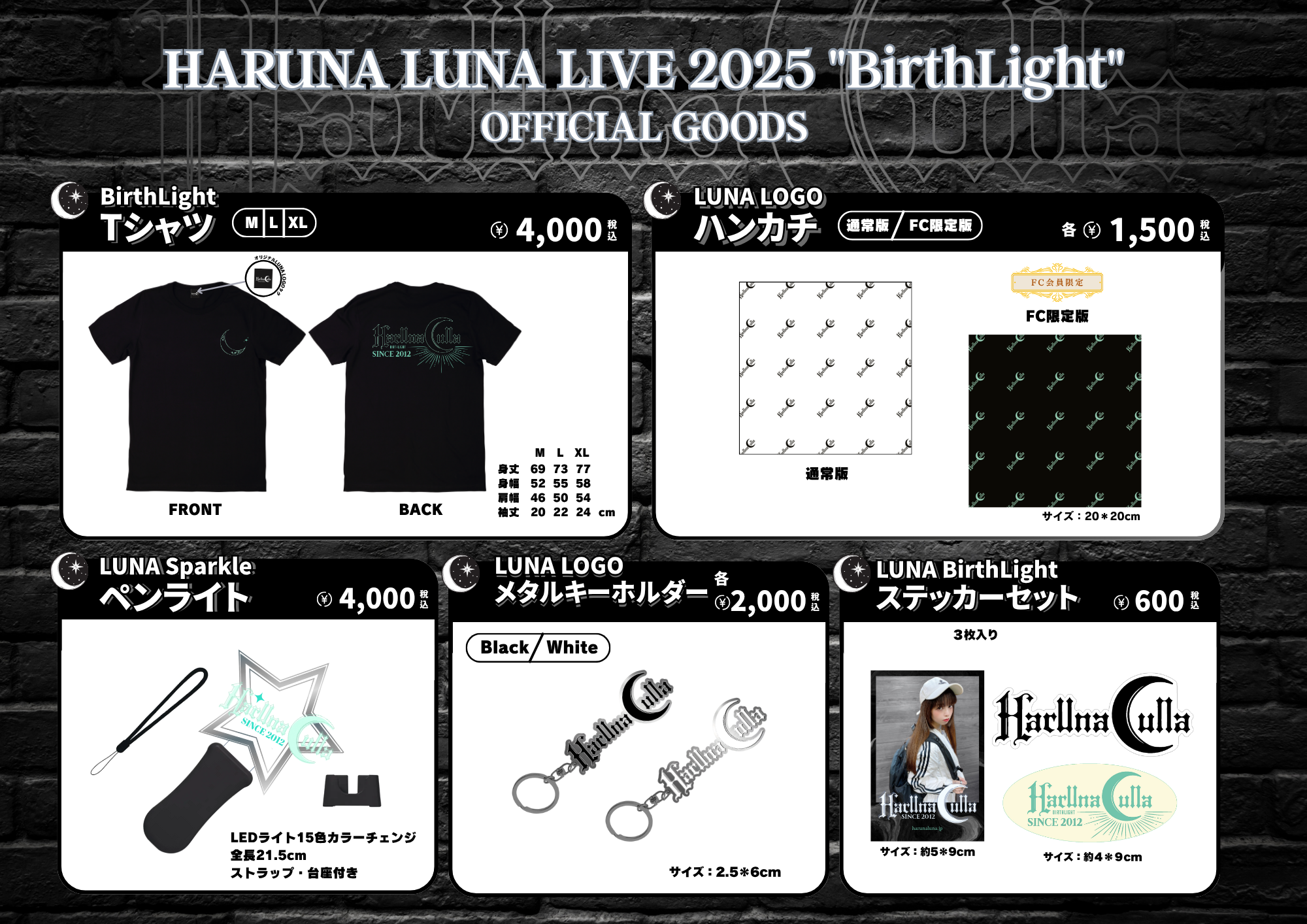 2025年10月11日(土)開催のライブ「HARUNA LUNA LIVE 2025 “BirthLight”」ライブ会場にて、オフィシャルグッズの販売を行います。