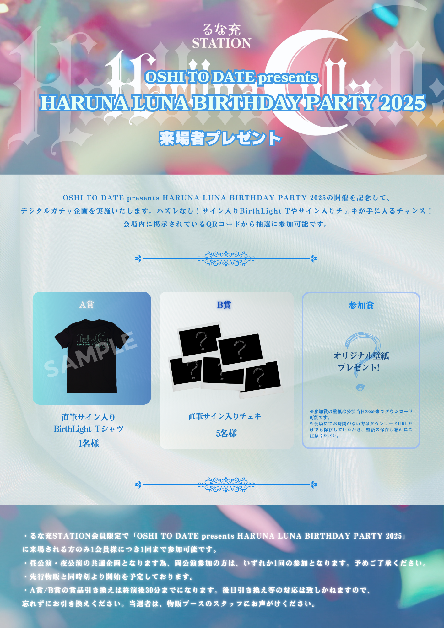 10/11(土)「OSHI TO DATE presents HARUNA LUNA BIRTHDAY PARTY 2025」会場にてFC会員様向け"デジタルガチャ"実施!